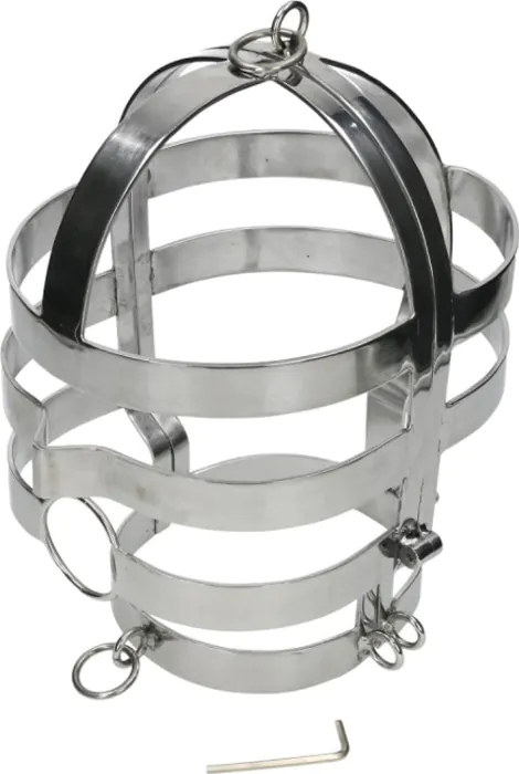 Tämä teräksinen BDSM-gorro tarjoaa intensiivisen submissiivisen kokemuksen. Sen mukana tuleva reikä mahdollistaa lelujen yhdistämisen, mikä tekee siitä monipuolisen lisäyksen.