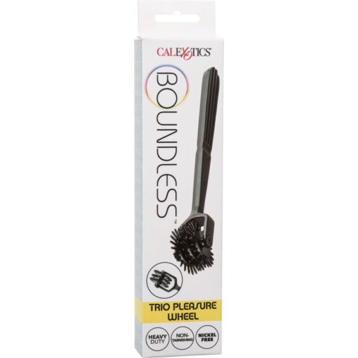 Voimakkaat värähtelyt, jotka herättävät aistit. Boundless Trio -pyörä on varustettu kolmella 22-pisteisellä pyörivällä rullalla, jotka tuottavat intensiivisiä tuntemuksia iholla. Valmistettu kestävästä ja nikkelitöntä materiaalista, tämä työkalu on suunniteltu turvalliseen ja kestävään käyttöön BDSM-sessioissa.