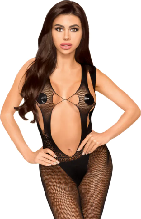 Tämä PENTHOUSE bodystocking kietoo sinut seksikkääseen kokovartalomuotoiluun, joka yhdistää läpinäkyvyyden ja pitsit, korostaen naisellisuuttasi. Valmistettu 88% nailonista ja 12% elastaanista, se mukautuu mukavasti hahmoosi, varmistaen sensuellin ja erityisen kokemuksen. Sen valmistus on täysin muovivapaa, tehden tästä vaatteesta kestävän vaihtoehdon.