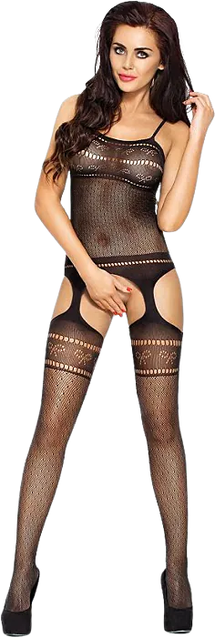 Kevyt ja hengittävä catsuit, joka korostaa kaaria ja tuo ripauksen rohkeutta. Yksi koko sopii useimmille, mutta voi olla epämukava suurempikokoisille.