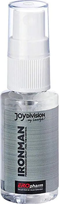 Hidastava spray JOYDIVISION EROPHARM Ironman auttaa pidentämään intiimejä hetkiä, mahdollistaa paremman hallinnan ja lisää nautintoa. Kompakti 30 ml pullo kulkee helposti mukana.