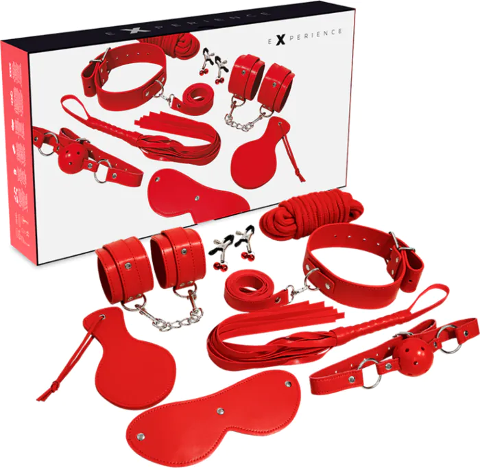 Intensiivinen BDSM-kokemus yhdellä setillä, joka yhdistää 8 olennaista osaa. Tämäsetti on valmistettu kestävästä synteettisestä nahasta ja se on suunniteltu sekä aloittelijoille että edistyneille. Mukana on hengittävä suukappale ja whipsi, jotka lisäävät jännitystä leikkeihin.