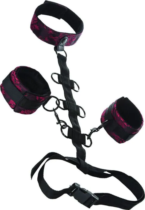 Elegantti bondage-kokemus kaulusmalleilla ja irrotettavilla käsiraudoilla, jotka mahdollistavat erilaisten rajoitusten kokeilemisen. Yhdistä kaula ja käsiraudat, nauti pelistä ja tunne ylellinen brokadimateriaali ihollasi.