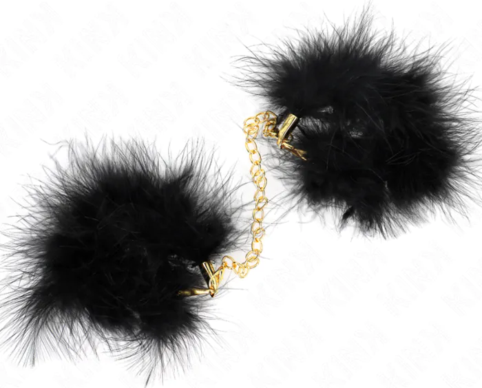 Kinky ja tyylikkäät KINK-käsiraudat pluisilla ja kultaketjulla. Ne tarjoavat mukavuutta ja nautintoa BDSM-leikkeihin, täydellinen väline seikkailuihisi.