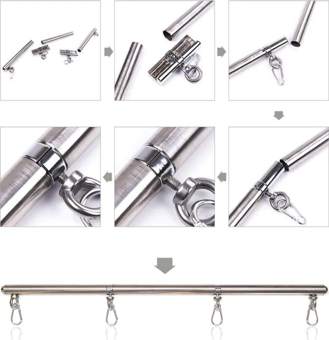 Aseta metallihaara haluamaasi asentoon ja käytä koukkuja kiinnittääksesi. Suosittelemme pehmeitä liikkeitä pelaamisen aikana mukavuuden lisäämiseksi. Maksimaalisen nautinnon saavuttamiseksi käytä vesipohjaista liukuvoidetta ihon kanssa.