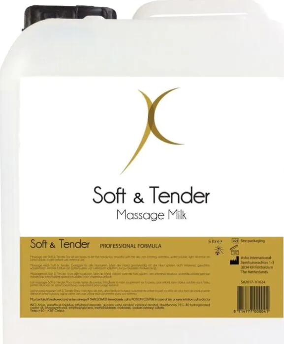 Pehmeä ja miellyttävä tunne iholla Soft and Tender -kehovoidetta käyttäessä. Tämä 5000 ml:n voide on suunniteltu kaikille ihotyypeille, tarjoten rauhallisen ja ilahduttavan kokemuksen ilman ärsytystä. Helppo puhdistaa vedellä, mikä tekee siitä käytännöllisen vaihtoehdon hierontaan.