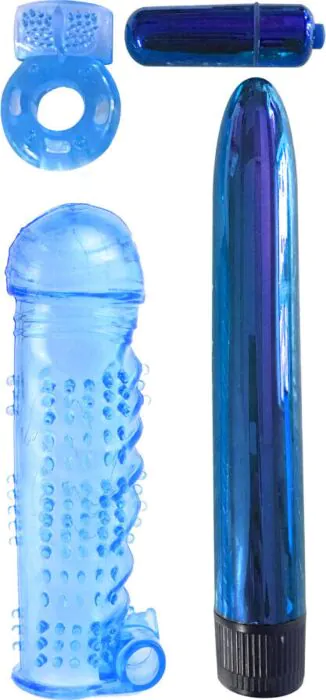 Monipuolinen lelukitti, joka sisältää neljä klassista tuotetta. Tämä 18 cm vibraattori ja sen lisävarusteet tuovat vaihtelua intiimiin hetkiin.