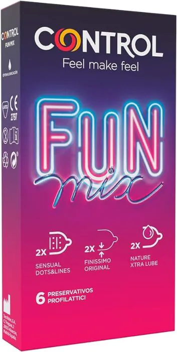 Monipuoliset sensaatiot yhdynnän aikana. CONTROL Feel Fun Mix sisältää kolme erilaista kondomia: Touch&Feel, joka tuo mukanaan erityiset urat ja kohoumat lisäämään stimulaatiota; Finissimo, joka on äärimmäisen ohut ja tuo läheisyyttä; ja XtraLube, joka on varustettu ylimääräisellä liukuvoiteella sujuvampaan nautintoon.