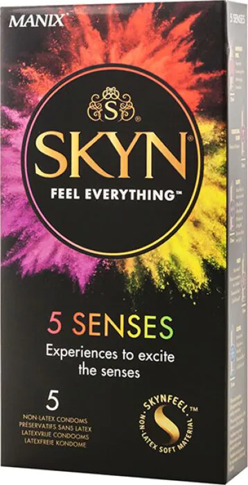 Tunne kuin iho ihoon materiaalin ansiosta, joka on sensopreno ja latex-vapaa. Manix 5 Senses -kondomi on täydellinen valinta, jos haluat nauttia erilaisista mauista ja tuntemuksista. Setti sisältää viisi erilaista kondomia, mukaan lukien raikas Skyn Cool ja lämmin Skyn Hot, sekä makea Skyn Cocktail Club.