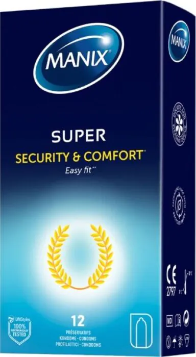 Manix Super -kondomit ovat erinomaisia jokapäiväiseen käyttöön. Ne tarjoavat mukautuvan istuvuuden ja ovat testattuja laadunvarmistukseksi.