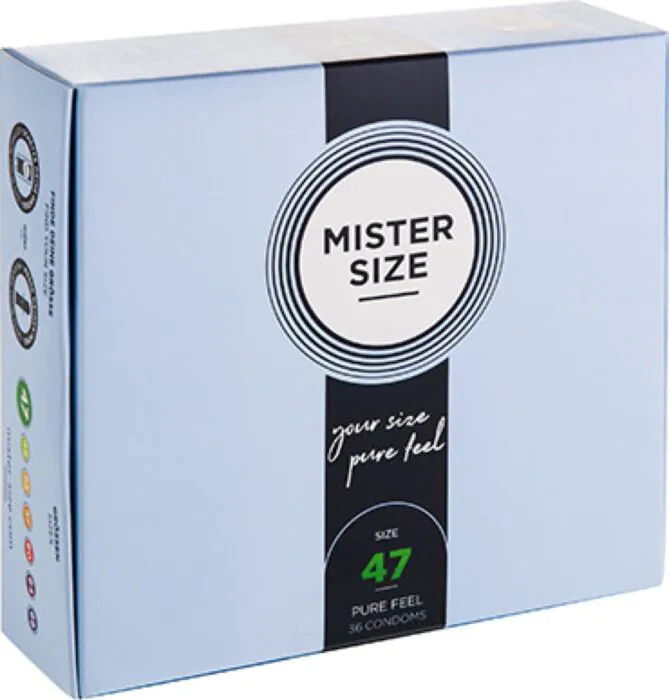 MISTER SIZE 47 mm kondomit tarjoavat tiiviin ja herkkä istuvuuden ohuen materiaalin ansiosta. Erityisesti XS-kokoisille, jotka arvostavat maksimaalista tunnetta.