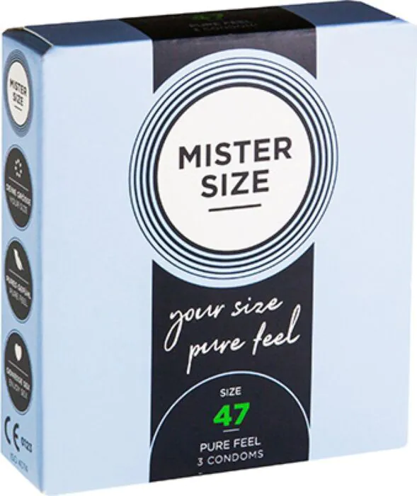 MISTER SIZE 47 mm kondomit tarjoavat erityisesti ohuempien peniksien käyttäjille suunnitellun tiukan istuvuuden ja suurta herkkyyttä. Tämä kondomi on täydellinen vaihtoehto ergonomista mukavuutta arvostaville.