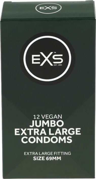 Exs Jumbo kondomit takavat mukautuvan ja turvallisen suojan, suunniteltu erityisesti niille, jotka tarvitsevat suurempia kokoja. Luonnonkumista valmistetut kondomit sisältävät silikonipohjaista liukuvoidetta, joka lisää mukavuutta.