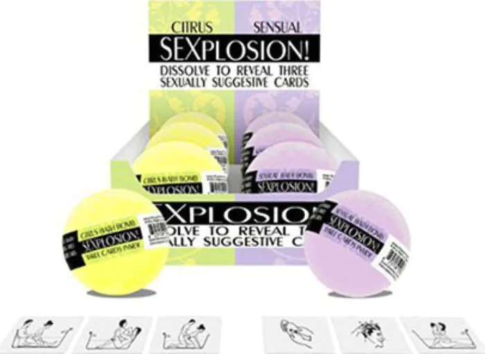 Aromien, kuplien ja visuaalisten effektille lisää heihetkesi. Kheper Gamesin SEXPLOSION-kylpypullot tuovat peliä juuri kylpyhetkiisi. Pullot sisältävät seksuaalisesti vihjailuja, jotka tuovat jännitystä. Materiaalina käytetään kuivaa seosta, joka aktivoituu vedessä ja luo kuplivaa hauskuutta useiden minuuttien ajaksi.