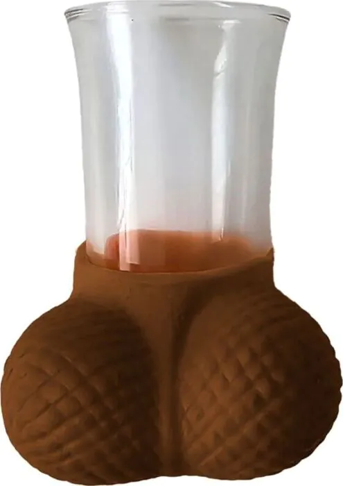 Nauraa ja hauskuutta on taattu tämän peniksen muotoisen shottilasin kanssa, joka on valmistettu lasista ja koristeltu ruskeilla kumimunilla. Sen alkuperäinen muotoilu tekee siitä suositeltavan lisävarusteen polttareihin tai syntymäpäiville, yllätä ystäväsi tai kumppanisi mausteisella kosketuksella, joka ei jää huomaamatta.