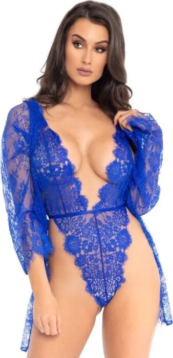 Tämä Leg Avenue -lengeriesetti tuo sensuaalisuutta ja naisellisuutta esiin. Kukkakuvioitu teddy ja yhdistävä viitta luovat upean kokonaisuuden.