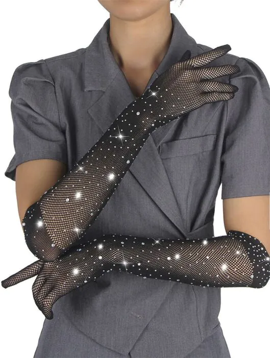 Kiiltävä viimeistely ja fantasia-diamanttidetaljit tekevät näistä käsineistä vastustamattoman lisävarusteen, joka tuo mukanaan hienostuneen ilmeen. Ne on valmistettu sekoituksesta 88% nailonia ja 12% spandeksia, ja ne tarjoavat mukavan ja joustavan istuvuuden, joka mukautuu käsiisi pehmeästi.