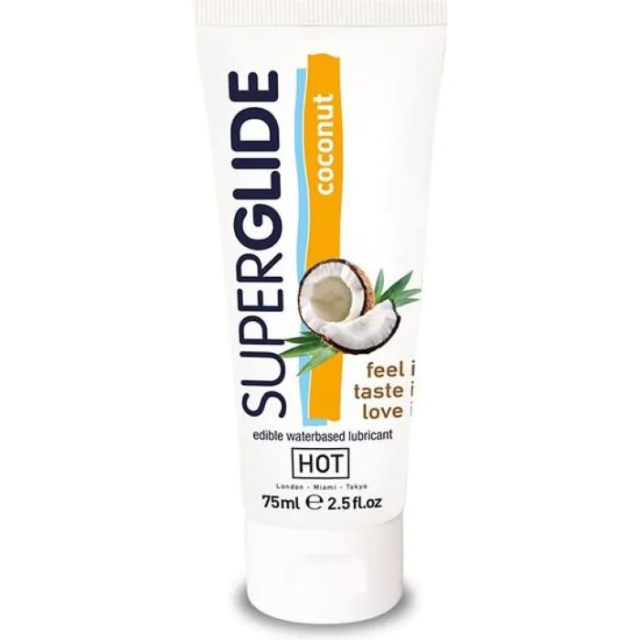 HOT kookoksen makuinen liukuvoide tuo makua ja iloa intiimeihin hetkiin. Ruoka-ainelaatuisista ainesosista valmistettu, täysin turvallinen kulutettavaksi.