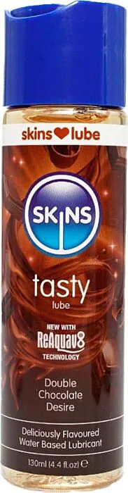 Vesipohjainen liukuvoide SKINS Doble Chocolate tuo herkullisen suklaan maun intiimeihin hetkiin. Sen reaktiivinen koostumus, Skins Reaquav8 -teknologian ansiosta, palauttaa liukuvuuden vain pienellä kosteutuksella, kuten suudelmalla tai vedellä. Tämä tarkoittaa vähemmän tuotteen lisäämistä ja enemmän nauttimista.
