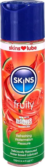 Maku ja liukkaus yhdistyvät SKINS Fruity Sandía -liukuvoiteessa. Tämä vedenpohjainen liukuvoide maistuu makealta vesmelonilta ilman jälkimaistiaista. Sen luonnollinen maku ja sokerittomuus tekevät siitä turvallisen vaihtoehdon seksuaaliseen nautintoon ja seksin aikana käytettäville kondomeille.
