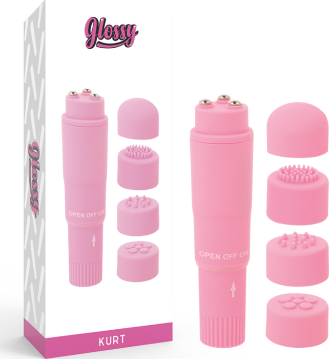 Mini vibraattori GLOSSY Kurt on täydellinen valinta niille, jotka arvostavat mukautettavaa ja kannettavaa hierontakokemusta. Neljä pehmeää vaihdettavaa päätä mahdollistavat monipuoliset stimulaatiot.