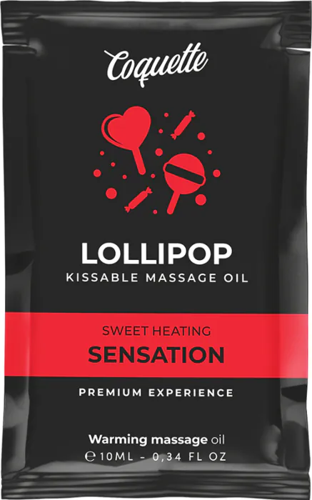 Lämpöä tuottava öljy, joka herättää aistisi ja tekee hieronnasta entistäkin nautinnollisempaa. Coquette Cosmeticsin Kissable-öljy liukuu helposti iholla ja tarjoaa herkullisen makuelämyksen piruetan muodossa.