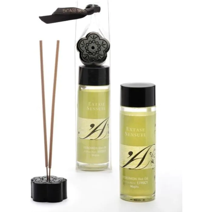 Lämpövaikutus vie sinut hurmaavaan maailmaan, jossa feromonit herättävät haluja ja vetovoimaa. Extase Sensuel Mojito -öljy imeytyy nopeasti ihoon, jättäen jälkeensä sileän ja pehmeän tunteen ilman rasvaisuutta. Tämä 100 ml:n öljy on täydellinen kumppani intiimeihin hetkiin.