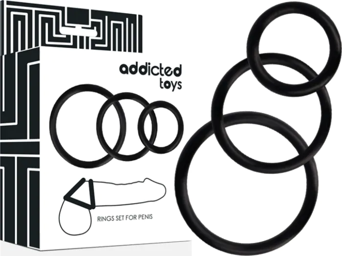 Addicted Toys rengas setti tarjoaa kolme erikokoista rengasta, jotka tehostavat erektiota ja antavat sinulle enemmän kontrollia. Sopii kokeilijoille ja kokeneille.