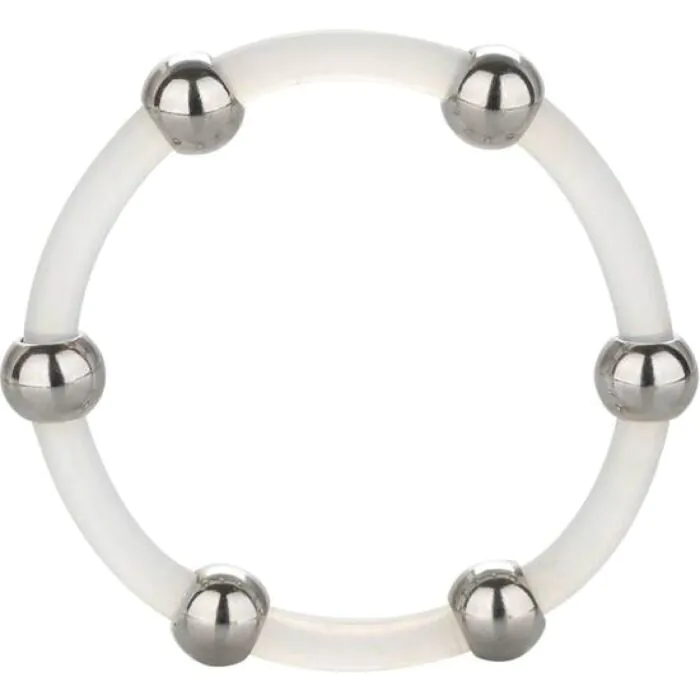 Tämä silikoonista valmistettu rengas teräspalloilla tuo lisää stimulointia kumppanisi kanssa. Loistava valinta herkkään ja intensiiviseen kokemukseen.