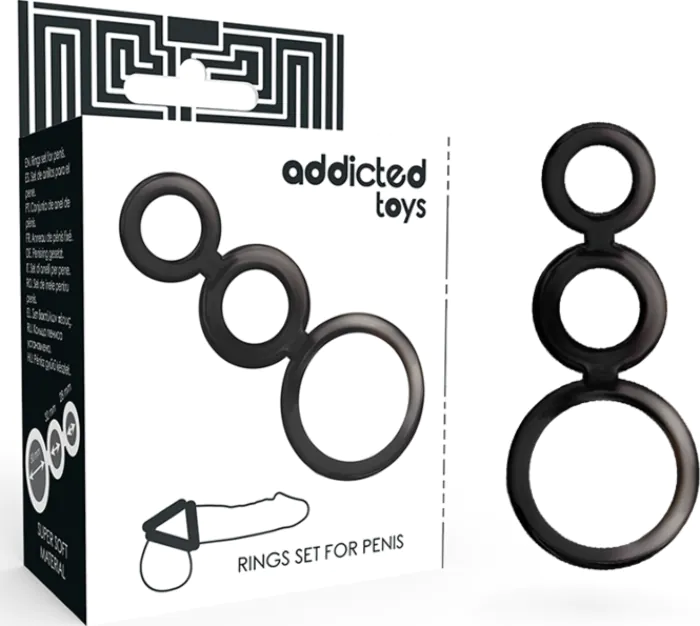 ADDICATED TOYS rengassarja tarjoaa tehokasta tukea ja erotiikkaa. Kolme eri kokoa mahdollistaa henkilökohtaisen säätämisen, jotta voit löytää juuri sinulle sopivan. Loistava valinta, jos haluat prolongoida nautintoasi.