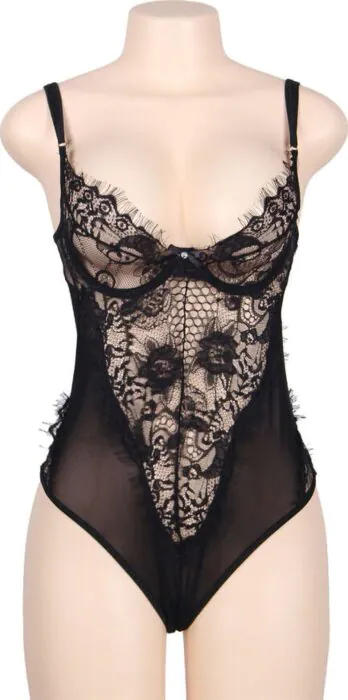 Rento ja houkutteleva teddy tuo esiin vartalon kauneuden. Sen läpinäkyvä pitsi ja kukkakoristelu luovat houkuttelevan ilmeen, joka on samalla mukava päällä. Tämä teddy on suunniteltu erityisesti Plus-kokoisille, ja siinä on kevyt rakenne ilman jäykkiä muotoja.
