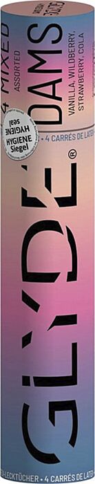 Glyde Sheer Dams -suojat tarjoavat hauskan tavan nauttia suuseksistä turvallisesti. Neljä makua makeuttavat hetkiä ja varmistavat suojan. Erinomainen valinta aloittelijoille.