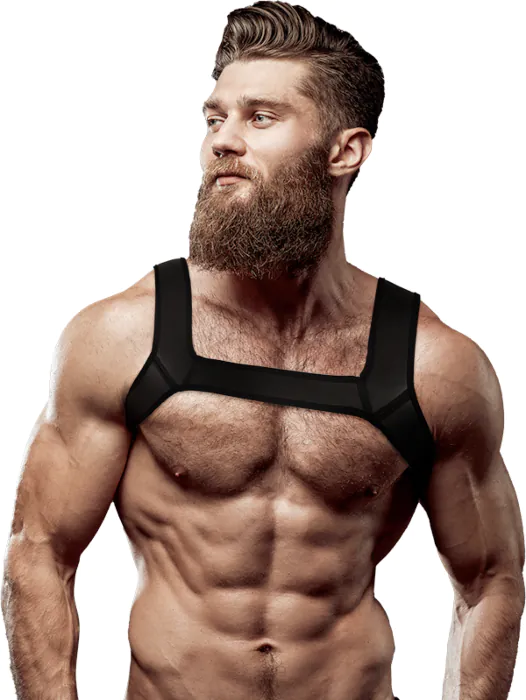 Aseta valjaat torsollesi varmistaen, että hihnat istuvat olkapäille ja rinnalle mukavasti. Yhdistä tiukkoihin vaatteisiin vaikuttavan ilmeen saavuttamiseksi. Suosittele liukuvoidetta vesipohjaisena lisäyksenä.