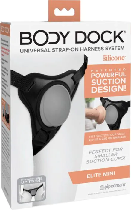 Pipedreams Body Dock Elite Mini on innovatiivinen valjaat, joka tarjoaa mukautuvan tuen dildolle. Helppo käyttää ilman monimutkaisempia asioita.