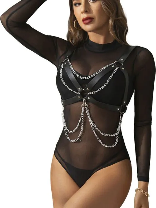 Viehättävä yhdistelmä nahkaa ja metalliketjuja tekee SUBBLIME-valjaista intensiivisen houkuttelevat. Asuste viehättää silmiä ja lisää itsevarmuutta, täydellinen mihin tahansa tilaisuuteen. Yksikokoinen malli antaa mahdollisuuden sopeutua monenlaisiin vartaloihin, mikä tekee siitä helpon valinnan.
