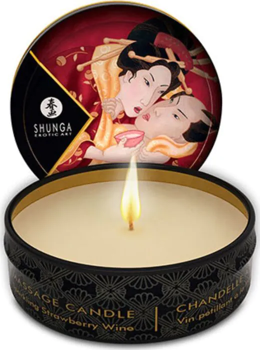 Shunga Mini Caress -kynttilä luo intiimin tunnelman, joka yhdistää herkulliset mansikan ja cava -aromit lämpimään hierontaan. Täydellinen lisäys romanttisiin hetkiin.