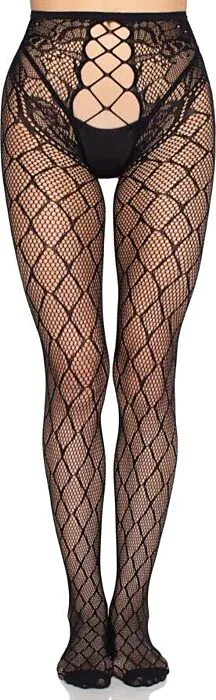 Verkkosukat Leg Avenue 1966 korkeavyötäröisillä ja pitsisomisteilla